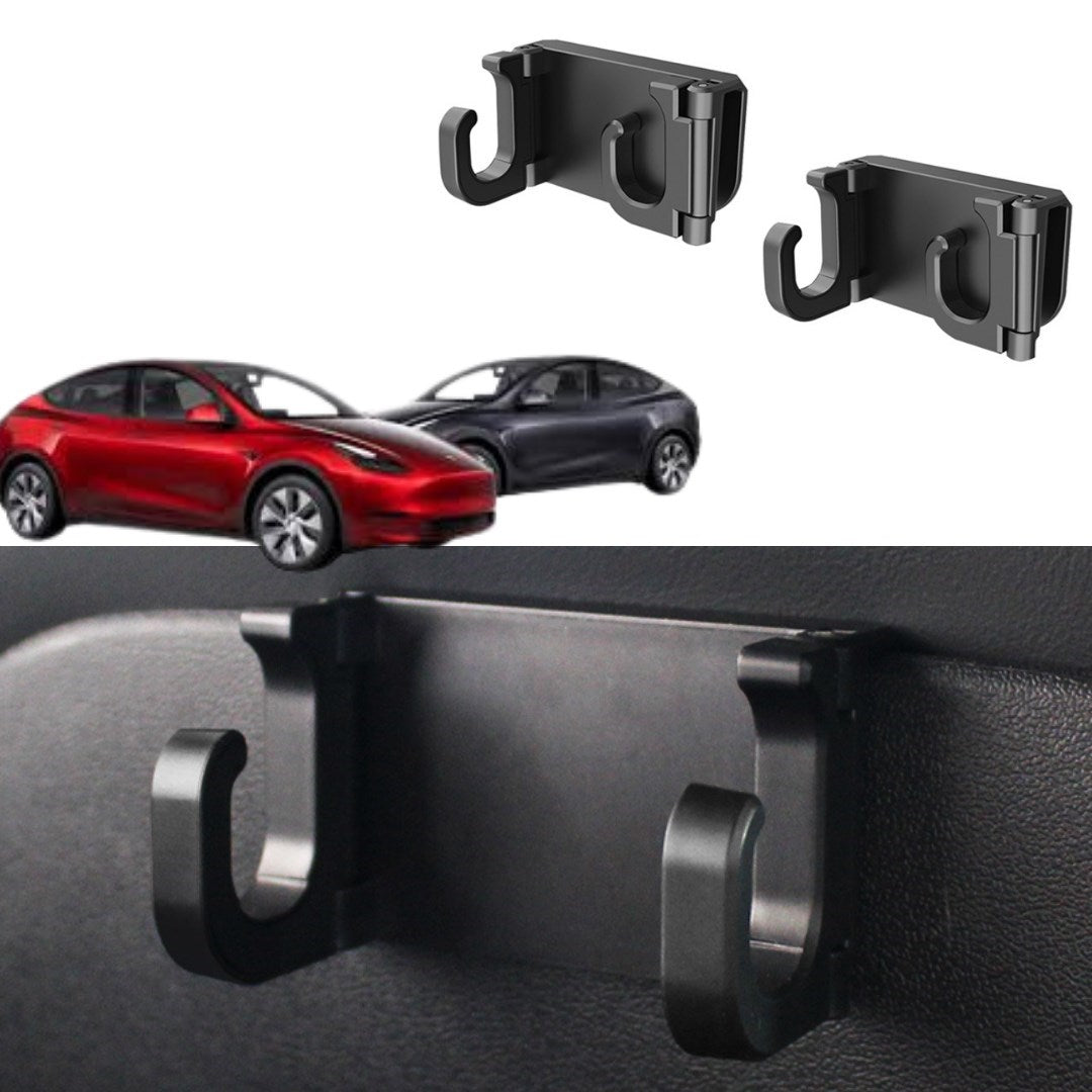 Tesla Model Y / Model 3 Koltuk Kancası İki Adet İki Tutuculu Set Olarak, Siyah Renk