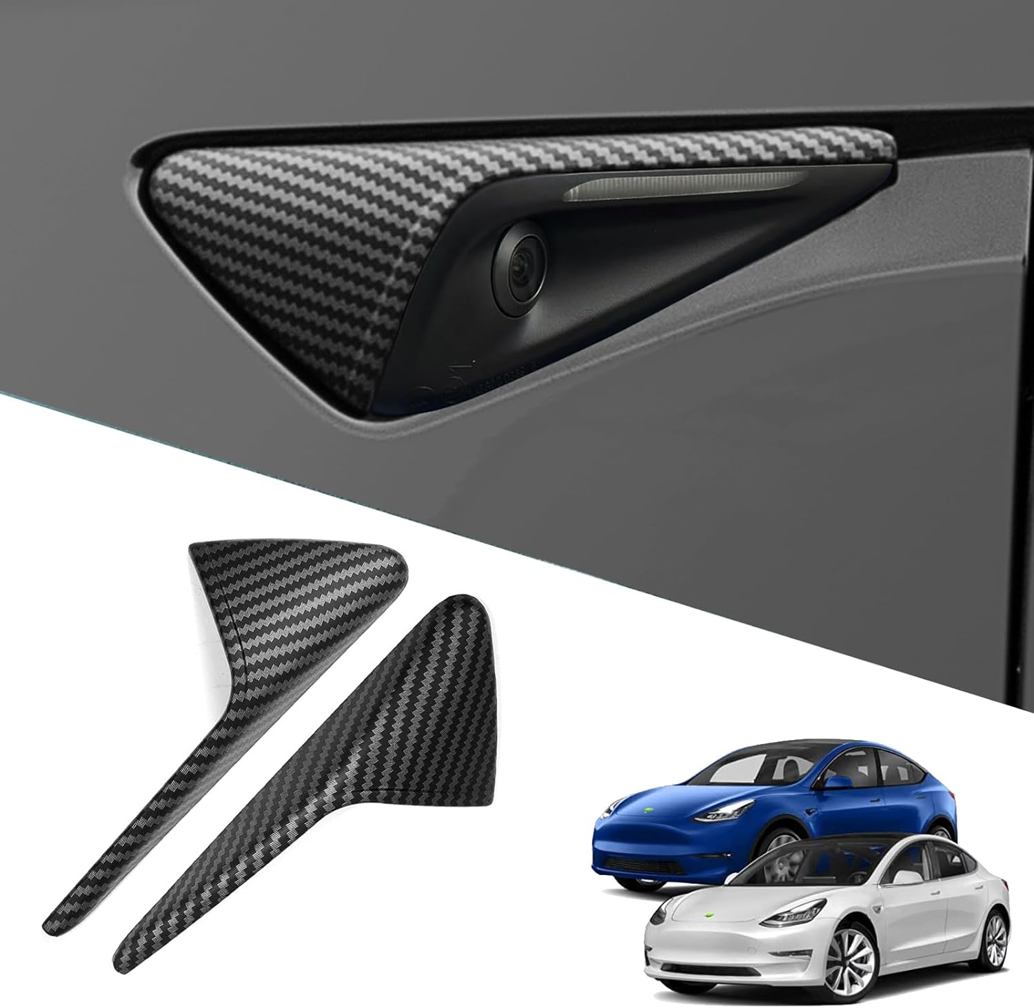 Tesla Model Y / Model 3 Yan Kamera Çerçeve Kapağı Karbon Kaplama, HW3.0, 2 Adet Set Olarak, Mat Siyah Renk